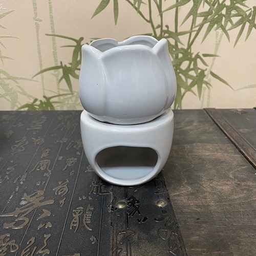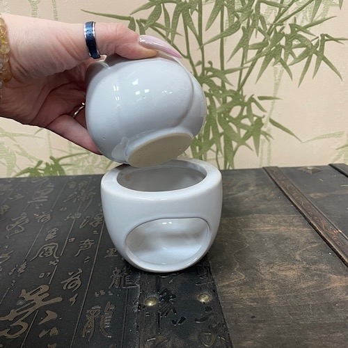Сверху наливаем воду, капаем пару капель любимого масла. Снизу — ставится маленькая белая свечка. Со временем вода испаряется, и мы наслаждаемся приятным тонким ароматом.