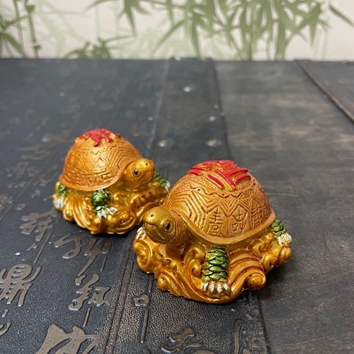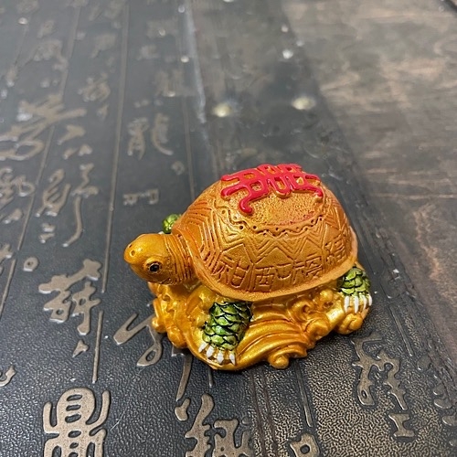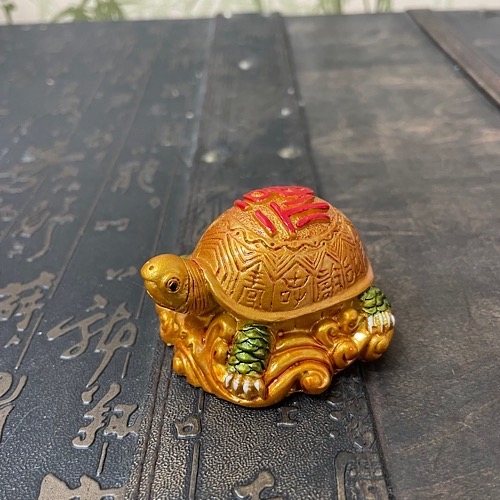 Черепаха — символ небесной поддержки и защиты, а так же мудрости и долголетия. Черепаха — образ Вселенной, её панцирь — небесный свод, а живот — земная поверхность. Она приносит деньги и поддержку влиятельных людей. Черепахи, не привередливы, их можно ставить где угодно. На панцире у черепахи — иероглиф Шоу — долголетие, и иероглиф Фук — Удача